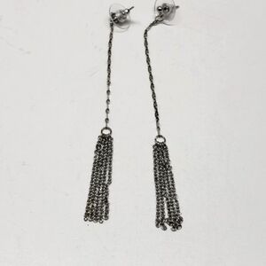 These Women's Polished Silver-tone Hoop Fringed Drop Dangle Post Earrings - 4" long are a stunning addition to any jewelry collection. The silver-tone hoops give a classic look, while the fringed drop dangle adds a touch of playfulness. NWOT
