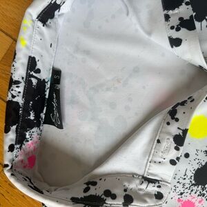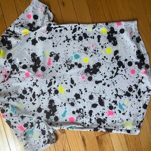 Elevate your wardrobe with this chic splatter print polo shirt. Featuring a vibrant mix of colors, this top is perfect for adding a pop of color to any outfit. Ideal for casual outings or a day at the office.