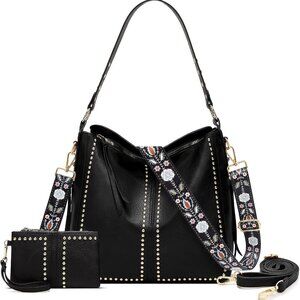 Stylish Women’s Studded Hobo Tote Bag & Pouch Set with Versatile Straps