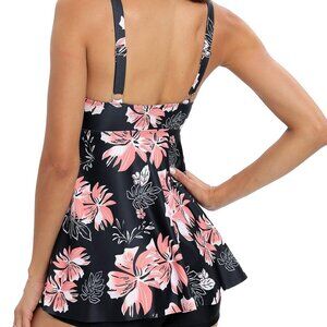 Features: This elegant two-piece tankini combines a high-waisted, retro-inspired design with full coverage and tummy control to make you feel secure. The padded top has removable inserts, and the fitted boyshorts feature elastic straps that hug your hips and legs comfortably. Ideal for showing off your figure while enjoying water activities.