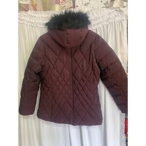 Designed in a rich eggplant color, this stylish jacket features a cozy faux fur hood that adds an extra touch of elegance to your winter wardrobe.