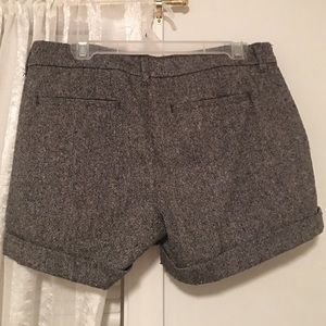 These stylish shorts can be layered with tights and booties and a fun top or cardigan! Worn twice and in excellent condition. Has belt loops a rolled cuff detail, and fake pockets in back. Has a black soft lining for comfort when worn!