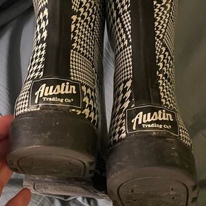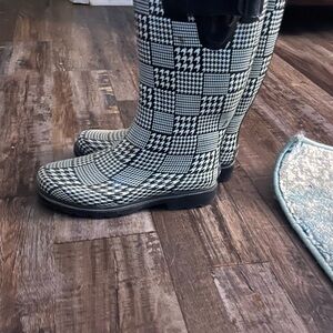 Stylish houndstooth & check Black and White Women's knee high Rain Boots Size 8