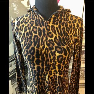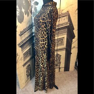 Fantastic stylish animal print dress by Norma Kamali for a great long skinny silhouette. Zips up in the front.