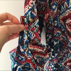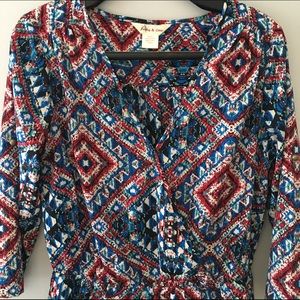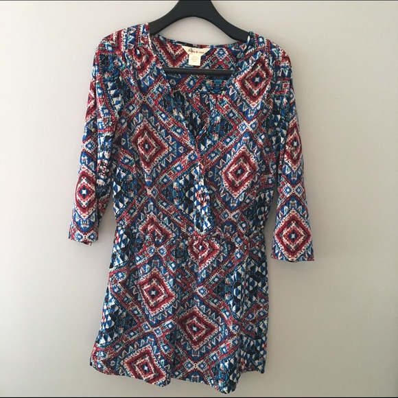 Lucky & Coco romper. I wore this once to a wedding this year and never wore it again - it is super cute but rompers are just not my thing. It's a size Medium. The bottom photo is to show that you can pull the sleeve up and and button it.