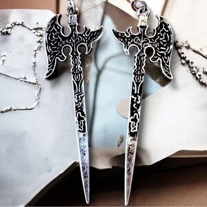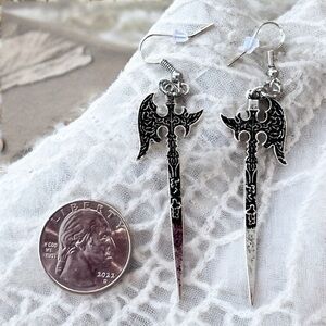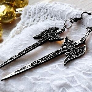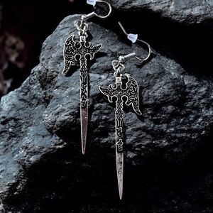 Stylish silver toned axe earrings with detailed design. Perfect for a DND player