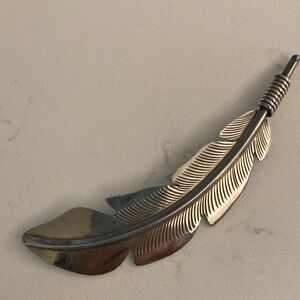 Enhance your look with this stylish silver feather brooch. A perfect accessory for any occasion. Sterling silver with B L signed. Bobby Lujan Taos New Mexico. Measures 3 3/8 by 3/4 in.