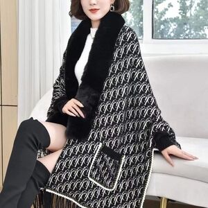 This women wrap is an absolute dream. It a wrap to keep you warm anyday, anytime. It is smooth, soft, and made of luxurious fabric that falls over your shoulder with a fur across the neck.