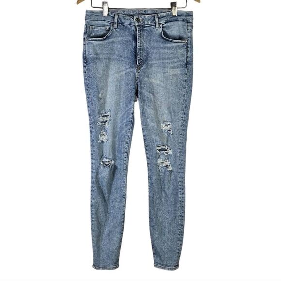 &Denim Classic Blue Distressed Skinny Jeans – High Waist, Ankle Length, Size 10