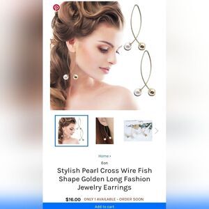 Stylish Pearl Cross Wire Fish Shape Golden Long Fashion Jewelry Earrings NWT