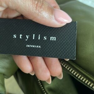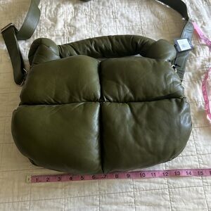 Stylish leather olive green puffer bag. Has a cross body strap. Perfect for everyday use.