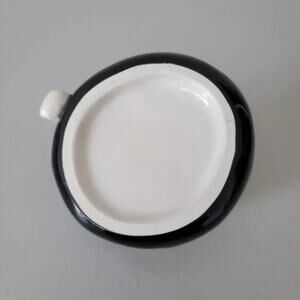 Charming stylized cat ceramic mug featuring a glossy black and cream finish with adorable raised details. This figural coffee cup has a sculpted cat shape that makes it a perfect piece for cat lovers, collectors, cozy kitchen décor, or anyone who enjoys unique mugs. Its modern yet whimsical design makes it ideal for daily coffee, hot cocoa, tea rituals, or as a fun gift for pet parents. Solid ceramic construction with a comfortable handle adds both cuteness and functionality.