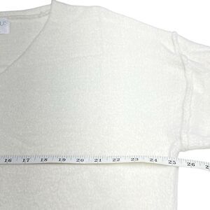 Features and details: medium weight, v neckline is almost a voop neck, exposed seams, drop shoulder, very soft and fuzzy
