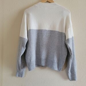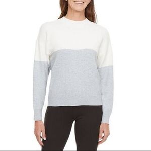 Stylus, Crew Neck Long Sleeve Pullover Sweater, Grey and Ivory, Size Small.