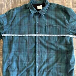 Green and black plaid Stylus snap up, collared shirt. Fully lined, very soft inside! 100% cotton. Preowned in very good condition,  no stains or holes. Measurements are included in the pictures.
