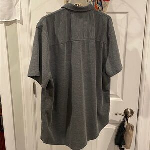 Casual and versatile charcoal shirt. Features short sleeves and a chest pocket. Ideal for everyday wear.