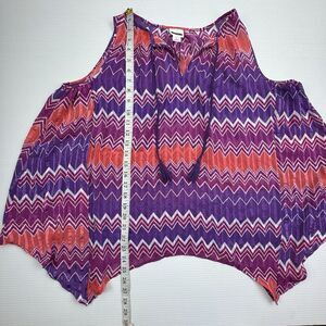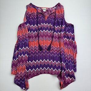 Stylus Sheer Tank Top Size Medium Blouse Sleeveless Purple Pink White Chevron