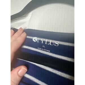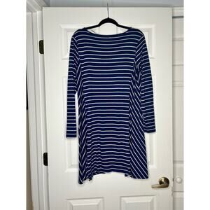Stylus Women's Navy Blue and Gray Striped Long Sleeve Casual Short Dress XL