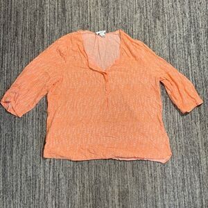 Stylus Women's XL Orange White 3/4 Sleeve Blouse Top Casual V Neck Lightweight