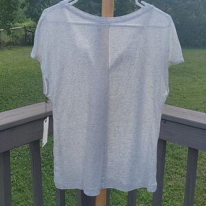 NWT shirt. The tag calls the color "Ivory" bit reality is it is more of a pale gray (not quite white) with gray flecks.