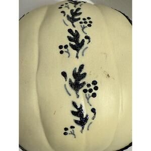 Styrofoam Decorated Pumpkin Neutral Fall Decor w/ Navy Leaf Design