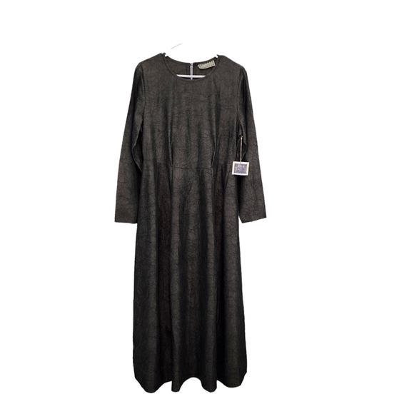 Women's Textured Long Sleeve Maxi Curve Dress from Su-Zen in Gun Metal.