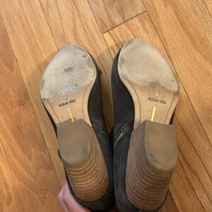 Dolce Vita black suade booties with brown block heel and zipper on the inside. Lightly worn.