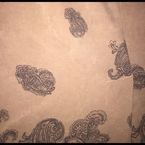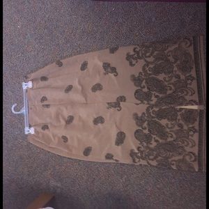 Brown suede like material.. It only looks like Suede , it pairs nicely with a white button down and ankle strap heels.