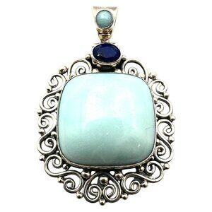Enhance your jewelry collection with this stunning sterling silver pendant featuring chalcedony and lapis lazuli stones. Perfect for any occasion, it offers a touch of elegance and sophistication.