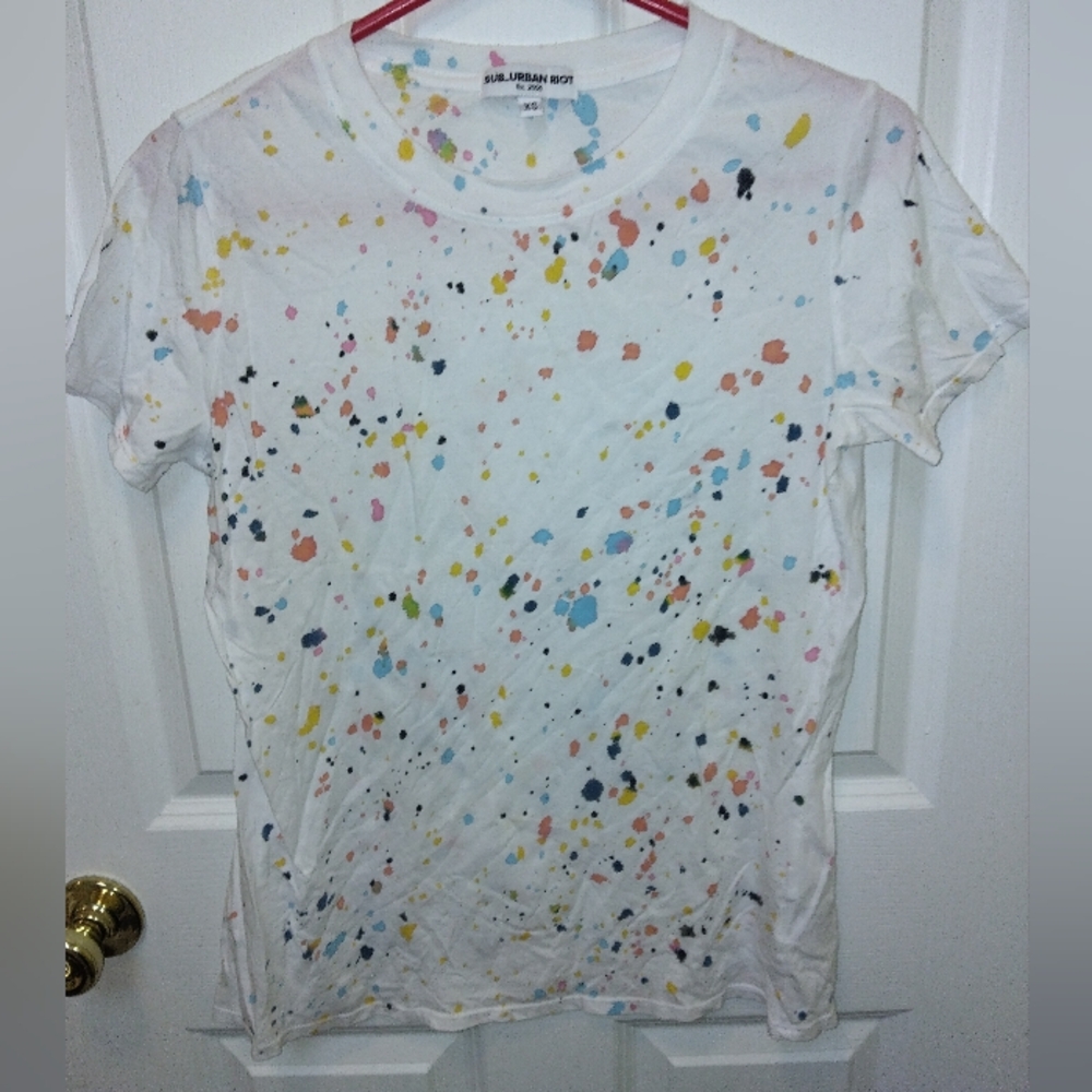 Vibrant splatter pattern. Soft and stylish. Ideal for everyday wear. 100% Cotton