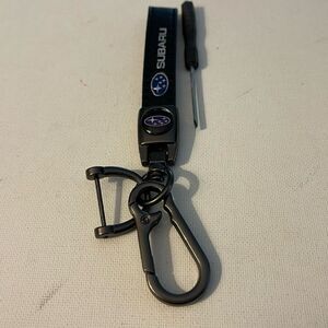 Subaru Logo key fob Keychain in Black and Silver leather NWT