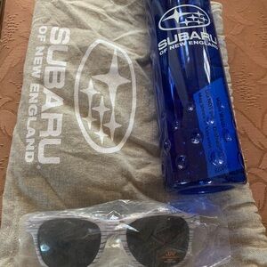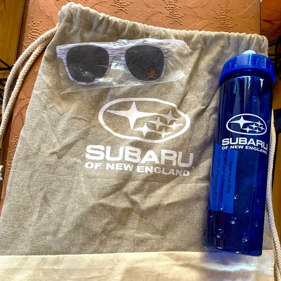 Subaru bundle includes new sunglasses water bottle and backpack. Can leave in your car to be ready for any adventure.
