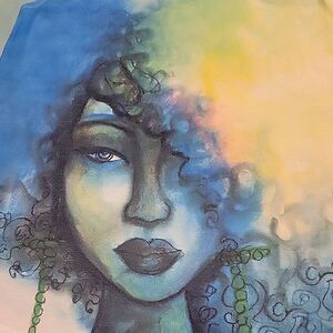 Sublimation Tank with beautiful woman print. Size 2XL but p2p only equals 16 inches so it appears to run small. Beautiful colors!! EUC