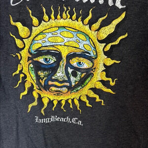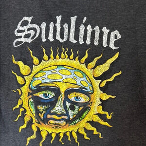Black tee with Sublime graphic. Features a vibrant sun design. Perfect for casual wear.
