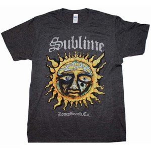 Support your favorite punk rock band with this men's Sublime Heather Charcoal t-shirt featuring famous Sun Logo poster design. 50% Cotton, 50% Polyester.