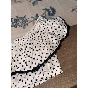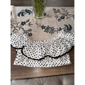 Suboo Polka Dot Crop Top Off Shoulder Ruffle Trim White Black XL