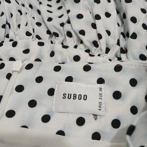 Suboo womens size 2 mini 100% linen polka dot asymmetric peplum skirt 26 waist
