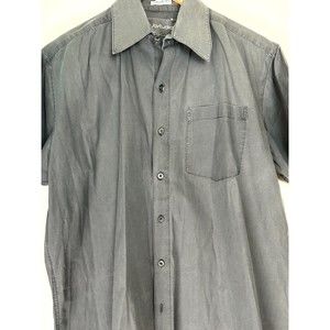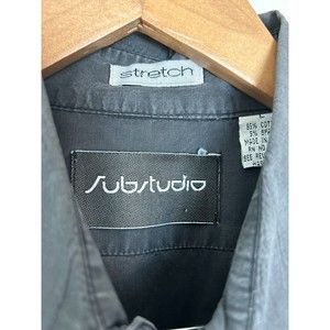Substudio Shirt Mens Large Button Down Stretch Gray Cotton Spandex Short Sleeve