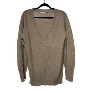 Subtle Luxury Women's M/L Sweater 100% Cashmere Deep V-Neck Pullover Brown Knit.