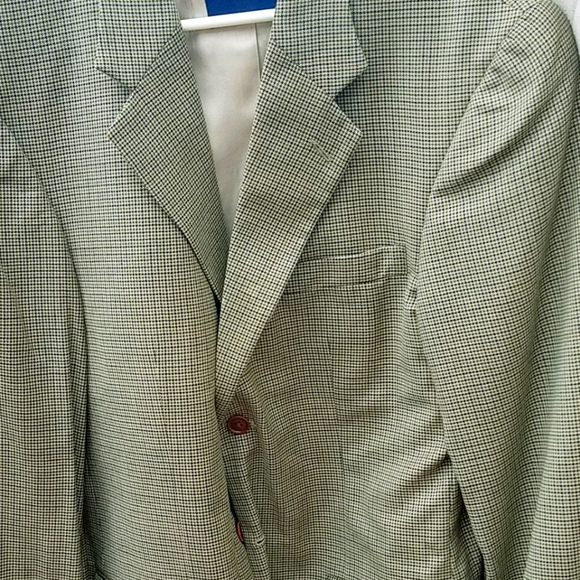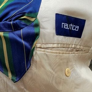 ...got it going on up close. Nautica 100% wool blazer. No vent. Classic inside sleeve lining detail that marks the brand.
