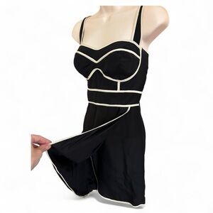 Subtly Sexy Black and White Silk Formal Mini Dress