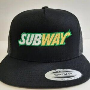 Subway Black Flat Bill Mesh Snapback Yupoong Hat Cap