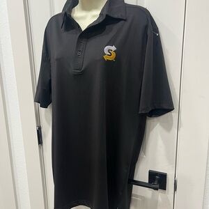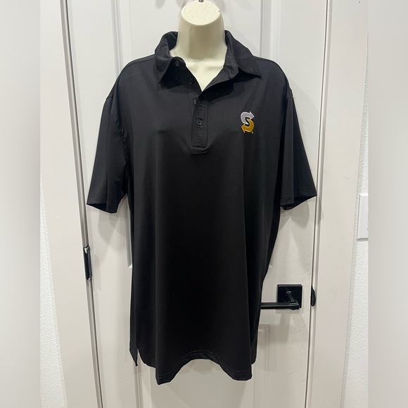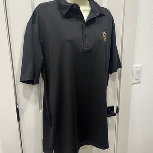 Stylish black polo shirt featuring a distinctive logo. Perfect for casual or semi-formal occasions.