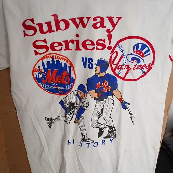 Celebrate baseball history with this Subway Series graphic tee. Perfect for fans, this white shirt features vibrant team graphics.