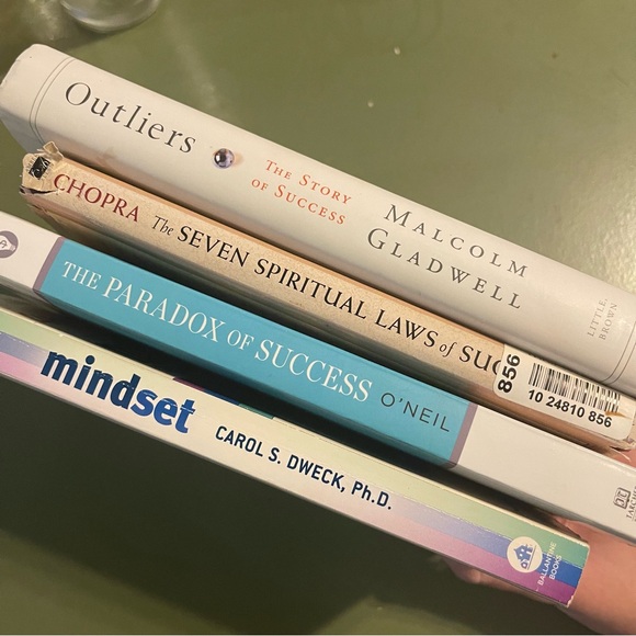 Set of four inspirational books including titles by Malcolm Gladwell and Carol S. Dweck. Perfect for personal growth and success.