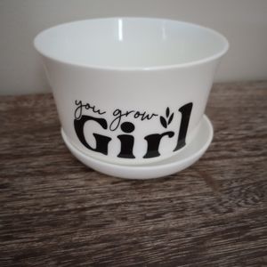 .Succulent, Cactus, Small Plants 4" Plastic Pot , Container, With Drain Holes, and Saucers. Custom Sayings on each set of 3 with 3 saucers