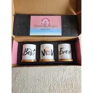 Brand new never used. Set of 3 succulent planters that write out "Best Mom Ever." Made of ceramic. With wooden bases and inserts for the bottom so that the drain doesn't clog.