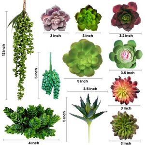 🧿💰 VALUE TO MONEY- Our set of 14 premier succulents made of high quality plastic material that surely pay the value for your money.These fake succulent vary in size from 8cm-13cm in width and 8cm-37cm in length.Their large size, flexible long stems, versatility of colors and designs make these unpotted succulents perfect to be put in creative arrangements or DIY crafts. These fake plants can be put in a tiny planter to make a single potted succulent for coffee table, desk or bathroom shelf