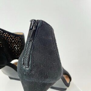 Such Detail! BCBGeneration ‘Kadia’ Die-Cut Black Suede Lacework Sandals Heels