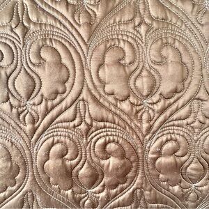 Enhance your bedroom with this luxurious brown quilted bedding set. The elegant design adds a touch of sophistication to any decor. Includes coverlet/quilt and two pillow shams.